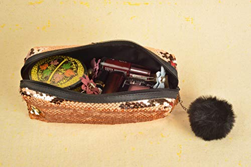 POUCH SIZE : Bronze Mermaid Sequin Pouch Size : Height : 8cm or 3.1 inch, Length : 20cm or 7.8 inch, Width : 5cm or 1.9 inch, Weight : 52gm approx.