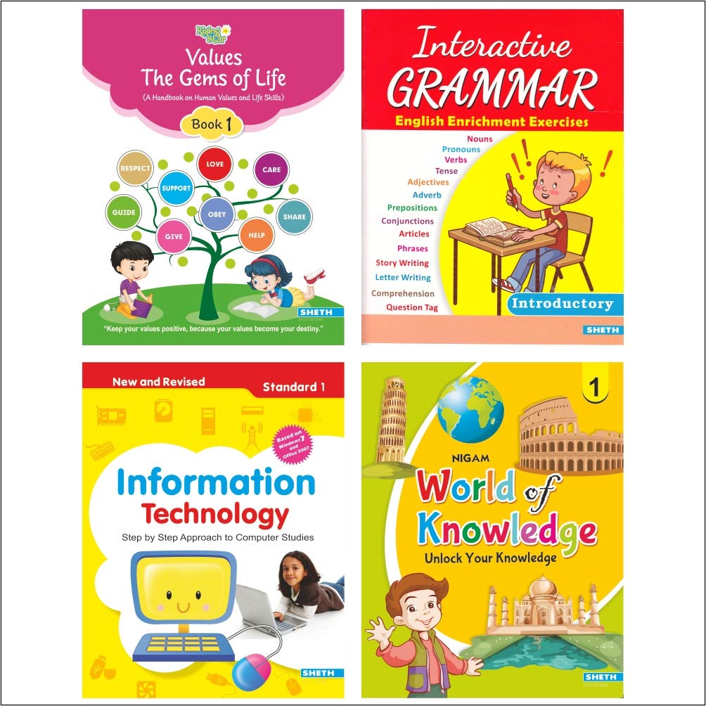 Sheth Publishing House brings combo books of “Nigam Information Technology, Interactive Grammar, Nigam World of Knowledge & Value Edition – Gems of Life” Information Technology is the scientific and practical approach to computation and this series has been created using latest technology, which includes Windows 7 Operating System & Microsoft Office 2007. The Interactive Grammar Series from Senior K.G. to Standard IX will enable the students to make use of the grammatical terms in a proper usage and help them to speak and write simple and correct English. This series contains a lot of puzzles and exercises in different forms to make the subject interesting and educative. Nigam World Knowledge 1 to 8 Book series will add to their existing knowledge bank. General Knowledge is an important aspect of everyone’s life today. It widens the state of mind of the child. A child should be able to compete in today’s unending informative and competitive world. ‘Rising Star Values: The Gems of Life’ is a handbook on Human Values and Life Skills. The easy, conversational style, as if talking to the students at a personal level, the inexhaustible fund of anecdotes and stories which are used to illustrate the messages to be conveyed and the very creative and stimulating exercises included at the end of each lesson which prompt students to reflect and make their own decisions.