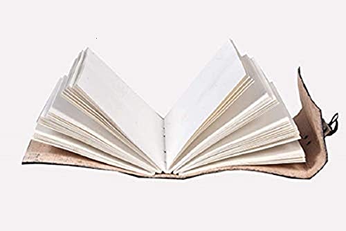 ✅ VINTAGE AND ANTIQUE APPEARANCE :- Designed to stand out from the crowd. Hand cut asymmetric flap and cover with handmade paper. The leather wrap around strap effectively keeps your journal closed and also acts as a handy bookmark. This old-fashioned leather has an amazing smell!