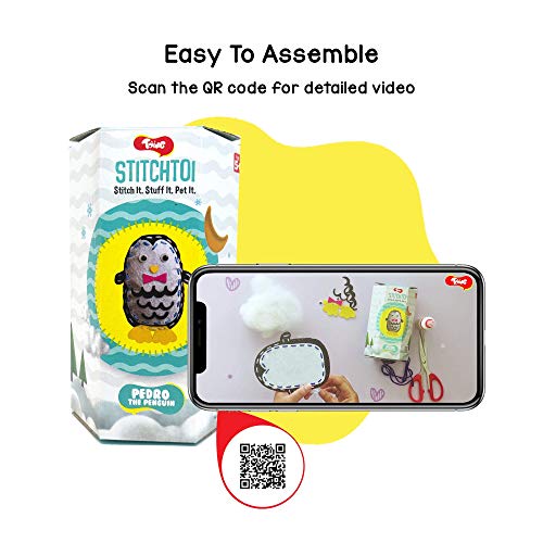 HOW TO MAKE: Follow the instructions on the pack to stitch and stuff the pieces to make the character. Scan the QR code on the front of the pack to access the how-to video