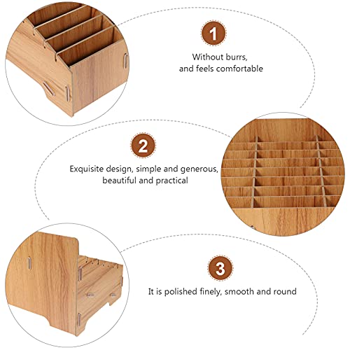 Wooden Desk Organizer Desktop File Holder File Shelf Mail Sorter Tray Multifunction Storage Box Rack for Office Home Tabletop