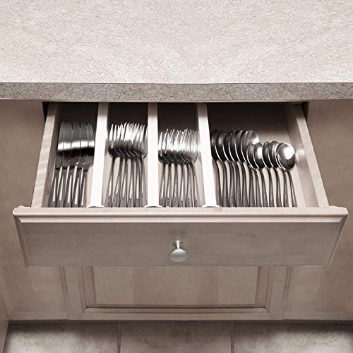 The design provides four deep-sided compartments for holding cutlery, a utensil area for knives or larger kitchen tools and a handy, moveable storage dish for small, loose items. The Drawer Store fits a wide range of drawer sizes from 11.4-inch up to 18.85-inch.