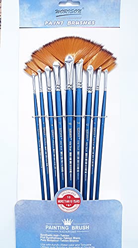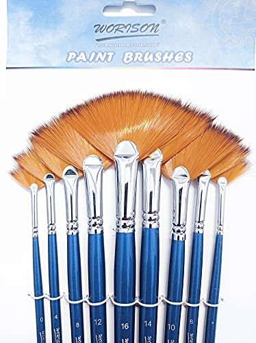 Set of 9 brushes in various sizes, including size #0, 2#, 4#, 6#, 8#, 10#, 12#, #14, #16. Our fan brushes are suitable for painting leaves, grassland with watercolor tubes, perfect for nail art or face painting with acrylic paints, and they are suitable for drafting, crushing or drawing straight line