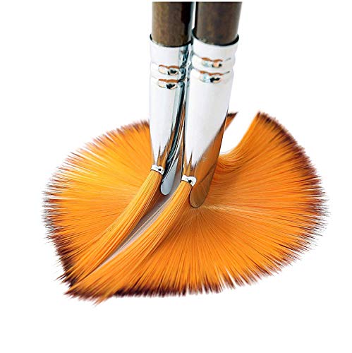 This Set of 9 Artist Fan Brushes for Acrylics, Gouache, Face, Watercolor Painting have a strong soft nylon hair which is perfect for a smooth and even application of paint. Excellent liquid holding capacity delivers an easy, smooth flow of paint. Secure ferrules hold the synthetic hair firmly and prevent them from damaging your work of art. Product Features:- High Quality 9 Piece Fan Brush Set in Sizes Ranging from Small to Large, So You Can Get the Brush with the Right Size When You Need It. Secure Ferrules Ensure No Hair Loss or Wobble. Short Wooden Handles Give You Greater Precision and Control for Finely Detailed Work. Synthetic Brushes with Excellent Liquid Holding Capacity for Easy, Smooth Flow of Paint. Perfect For Oil, Acrylic, Gouache, Watercolor, Face Painting. . Package Contains 9 Artist long handle Fan Paint Brushes Set.