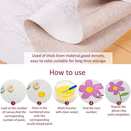 NUMBERED ACRYLIC BASED PAINT SET – Made of healthy digital pigments, bright colors which can be directly colored. If the paint is too dry, add 1 or 2 drops of water to stir evenly.