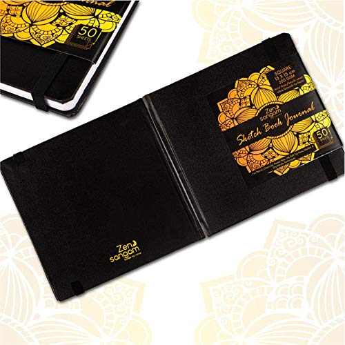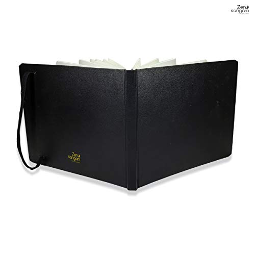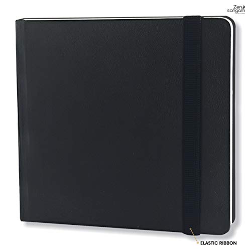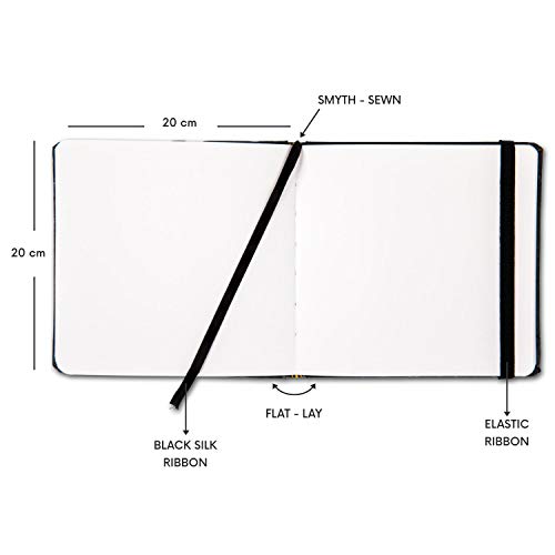 Premium HANDMADE PVC Leatherette Cover Smyth Sewn (Stitch Bound) Sketch Book with Flat Lay feature for Easy Drawing and Flipping. Round cornered for Elegant LookIncluded with Silk Bookmark for Page Marking and Black Elastic Ribbon for Stylish Holding