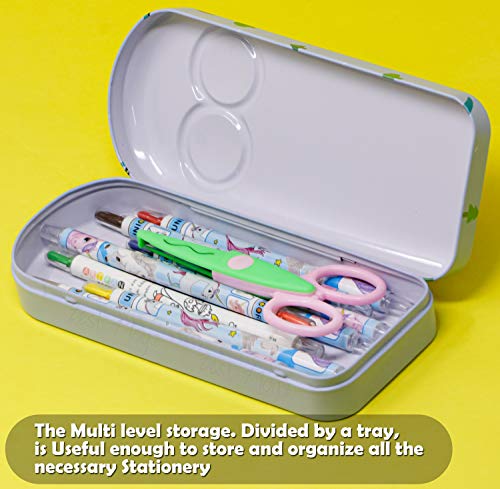 A Classic Metal Pencil Box.Ideal To Hold Pencil, Eraser, and School Supplies.Inside Removable Tray Help Organize School Supplies.