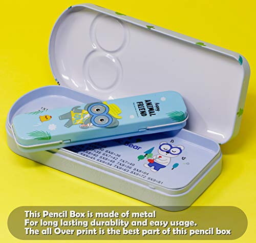 Zest 4 Toyz Pencil Box Multifunction Colorful Cartoon Printed Double Storage Metal Pencil Case for Kid, Best School Gift Set for Kids (Sky Blue)